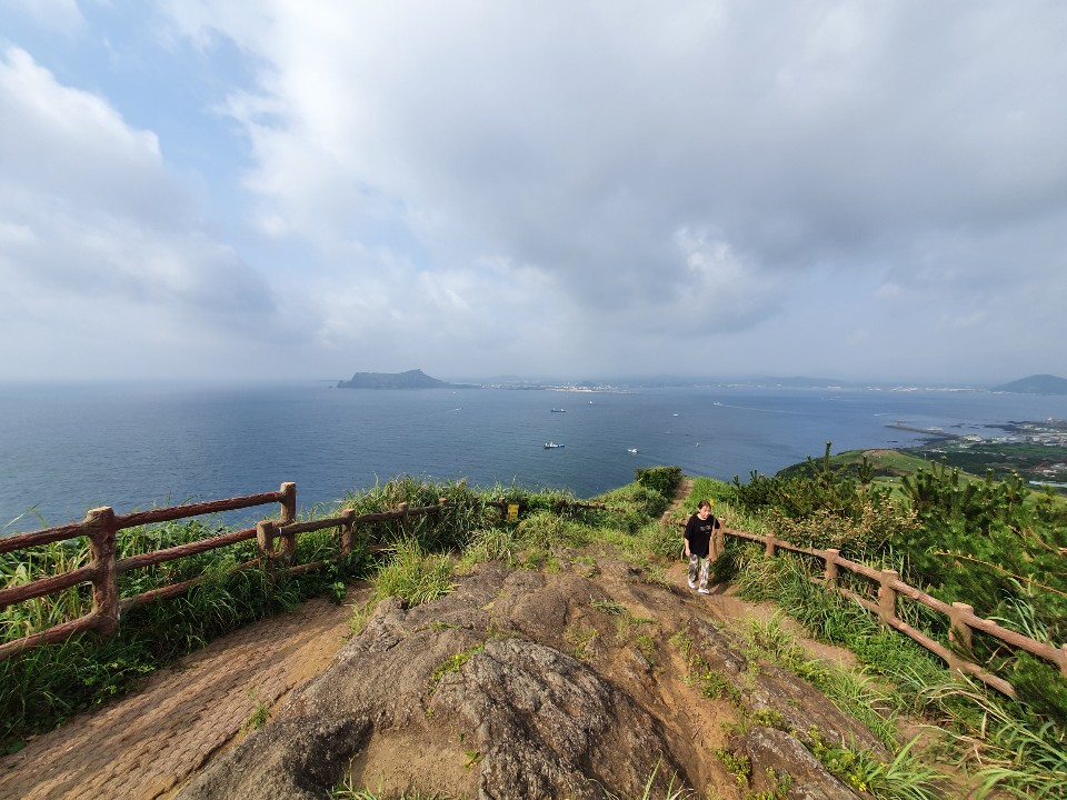 산책을 즐기고 자던 아낙들을 깨워 아침을 먹고 우도봉을 오른다.