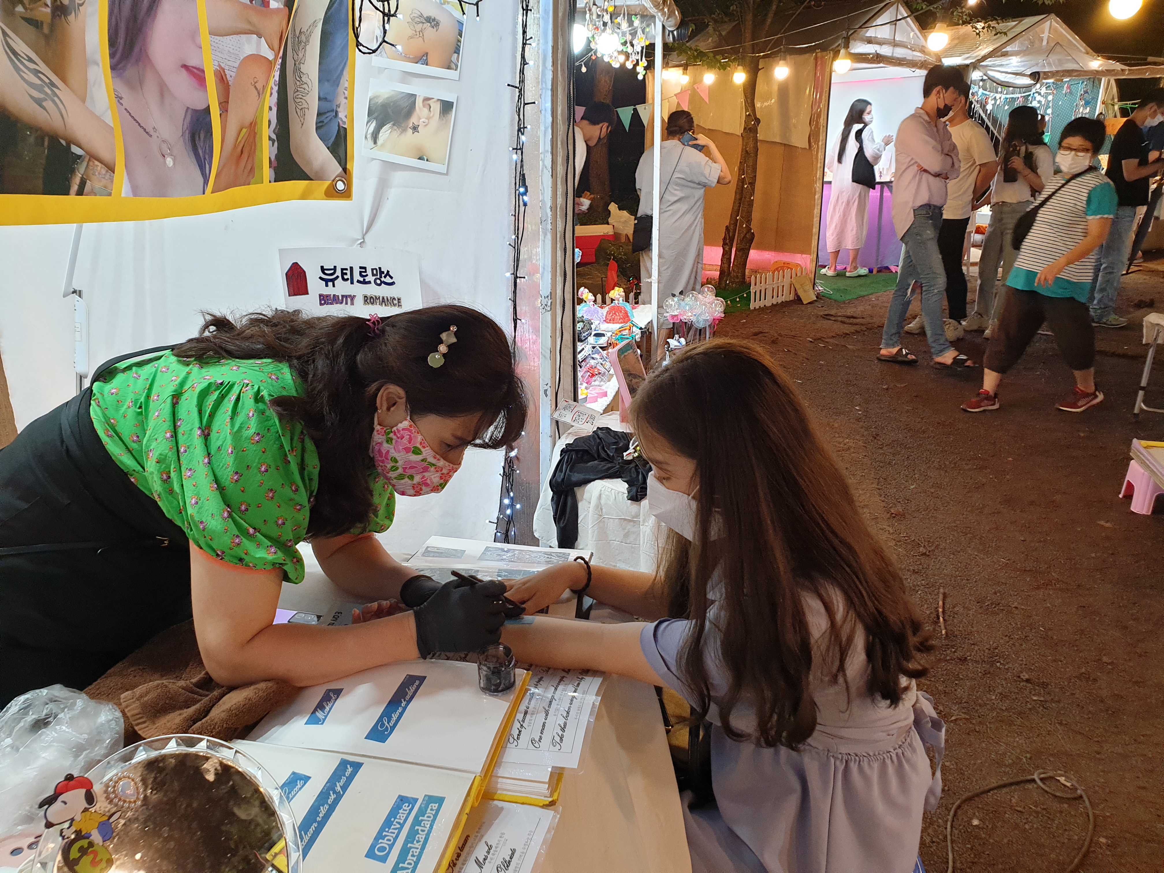 야시장 아래에는 갖가지 색색의 조명이 이곳에 오는 사람들의 눈을 즐겁게 한다.
