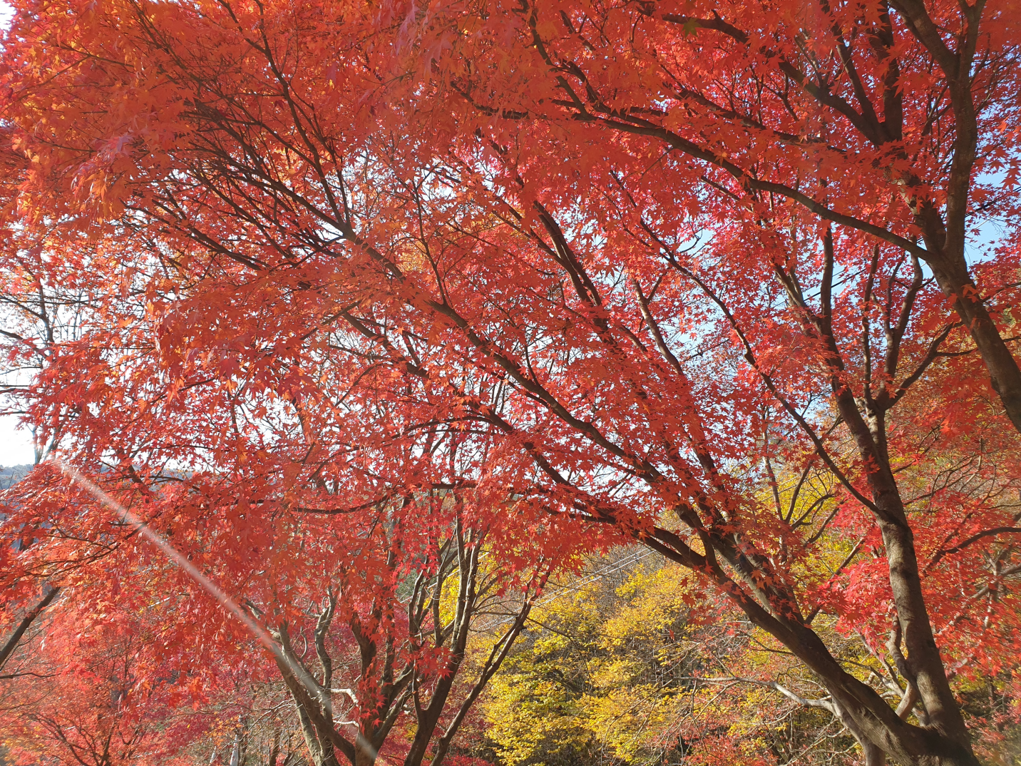 내려가는 길은 온통 붉은 빛과 노란 빛으로 가득하다.