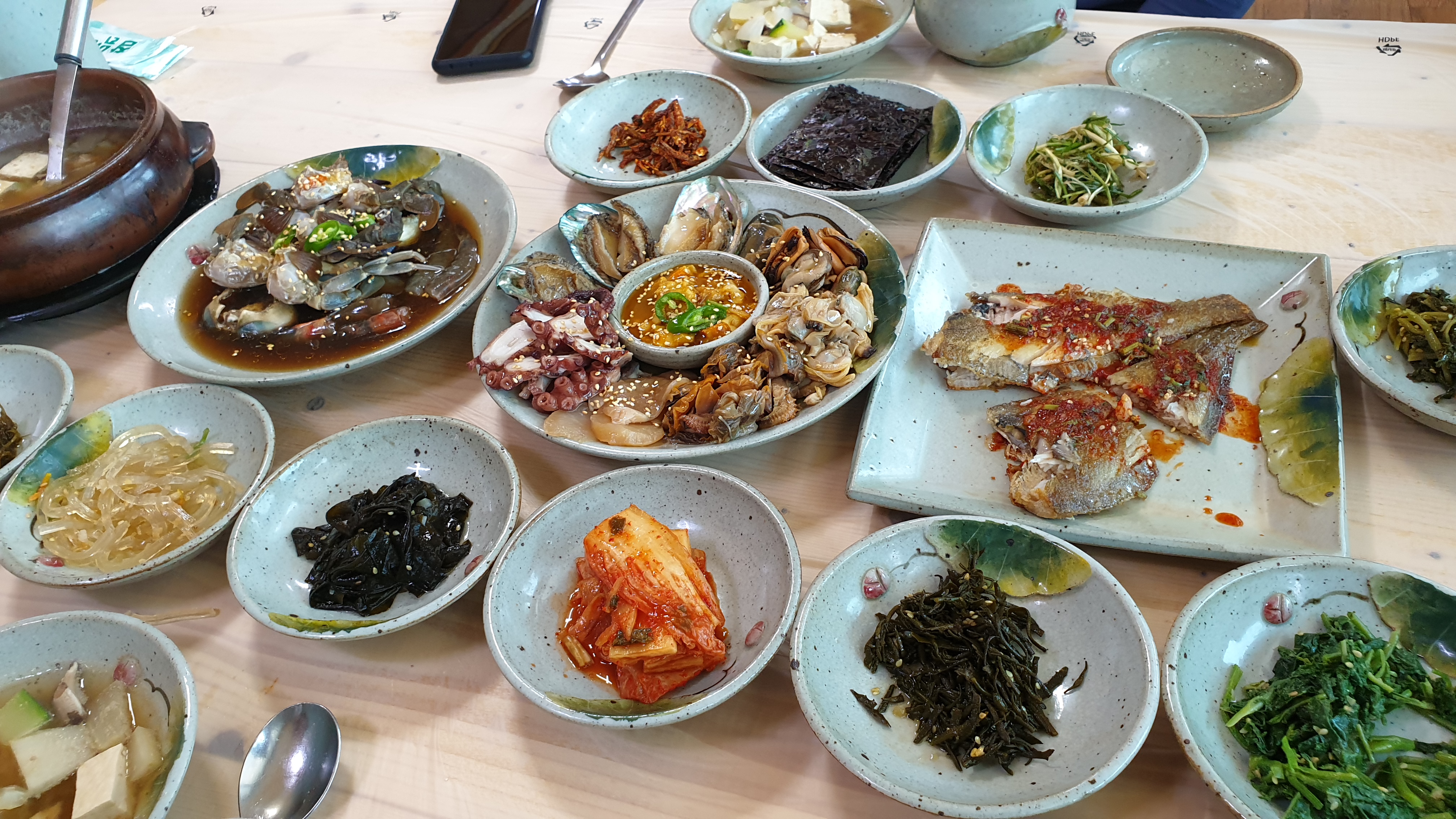 갯내음이라는 간판의 식당엔 전복을 비롯한 여러가지 해산물로 담근 해물 모듬장을 내오는데 어디서도 맛보기 어렵다.