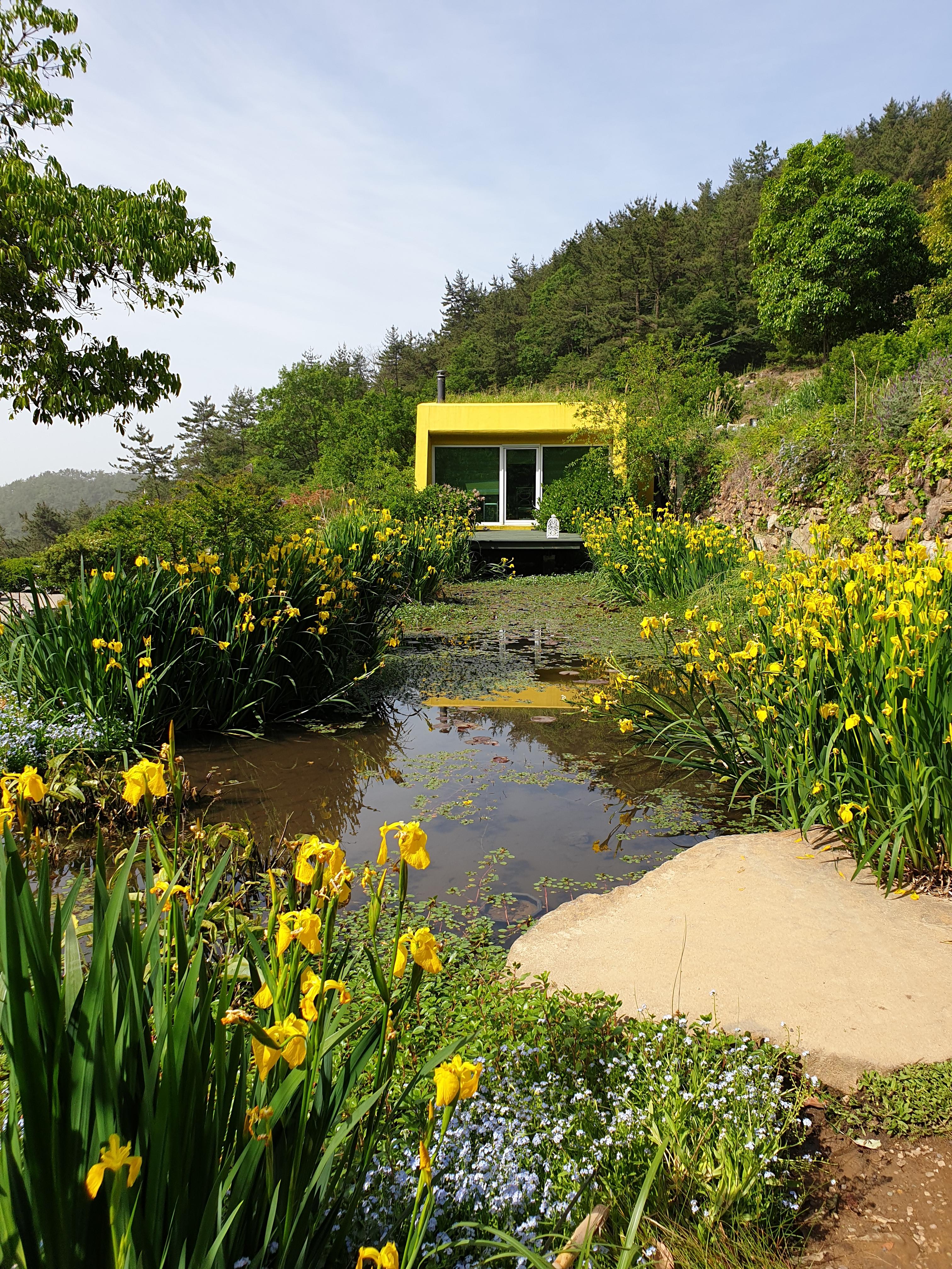 수선화가 예쁘게 핀 작은 연못....