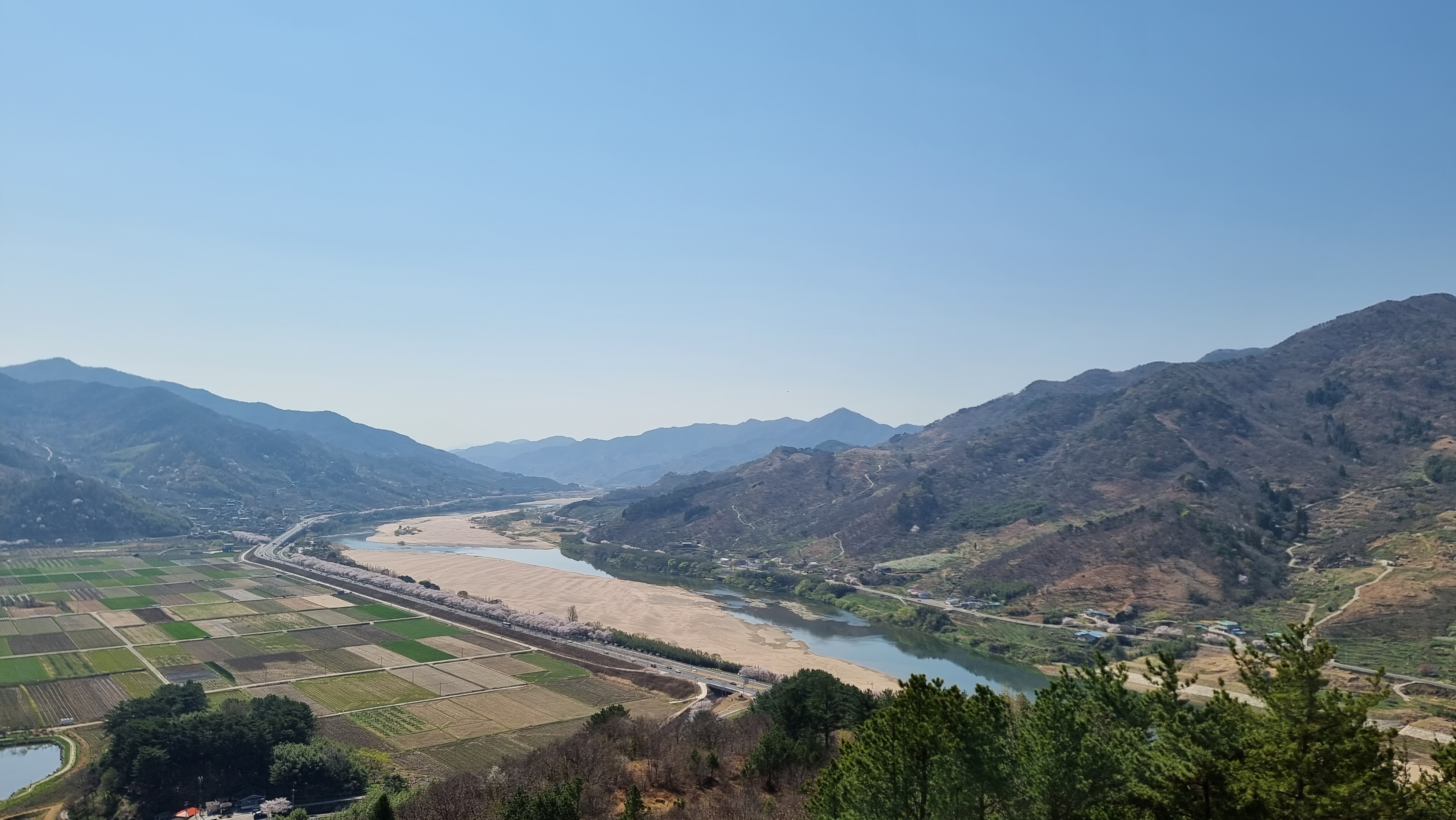 모내기 전에 물을 쟁겨놓느라 강이 좀 말라있는게 흠일세....