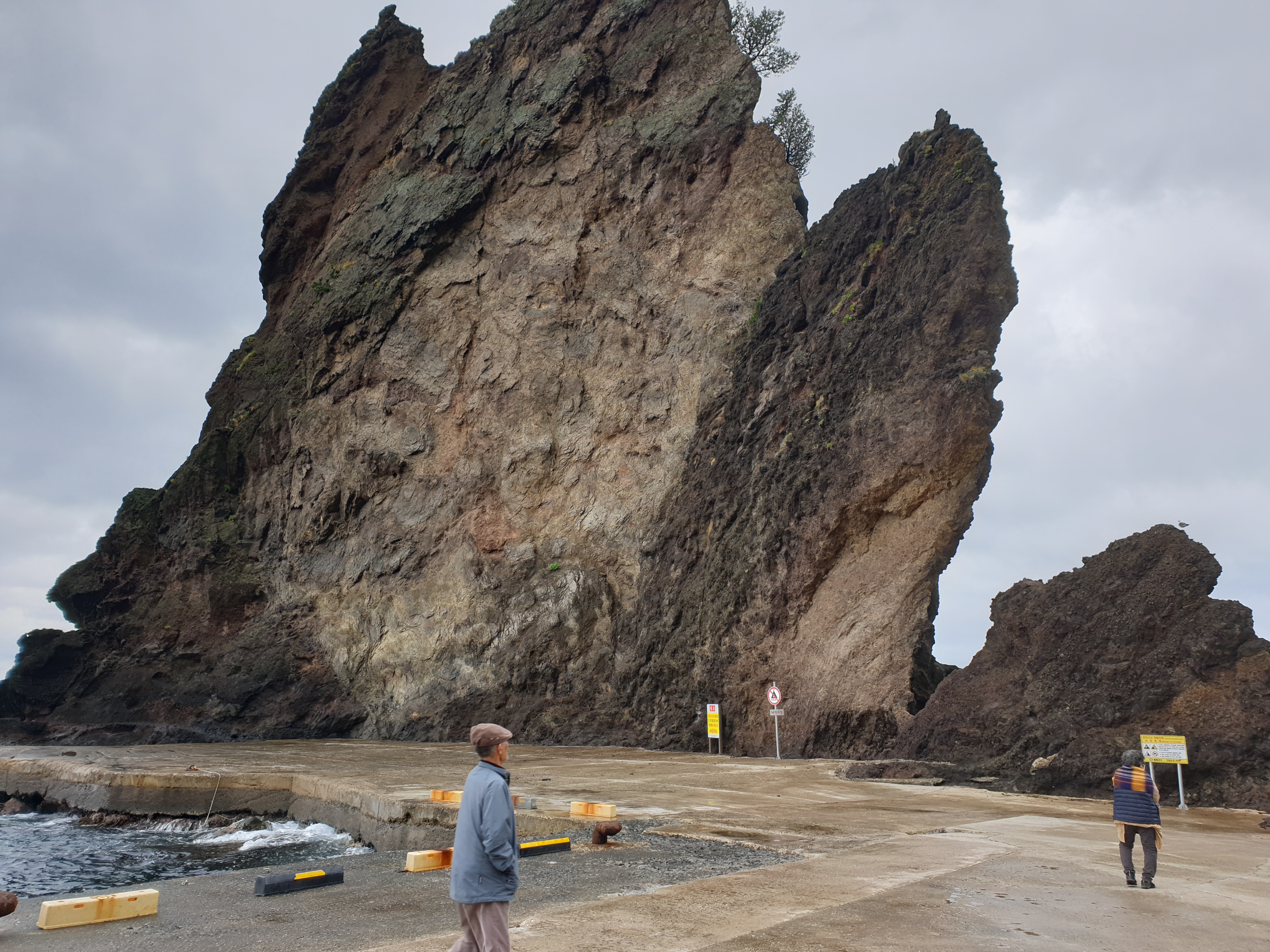 울릉천국 뒤에 노인바위가 우뚝서있다.