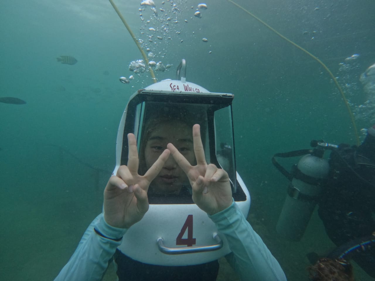 씨워킹을 하러가는 배위에서.